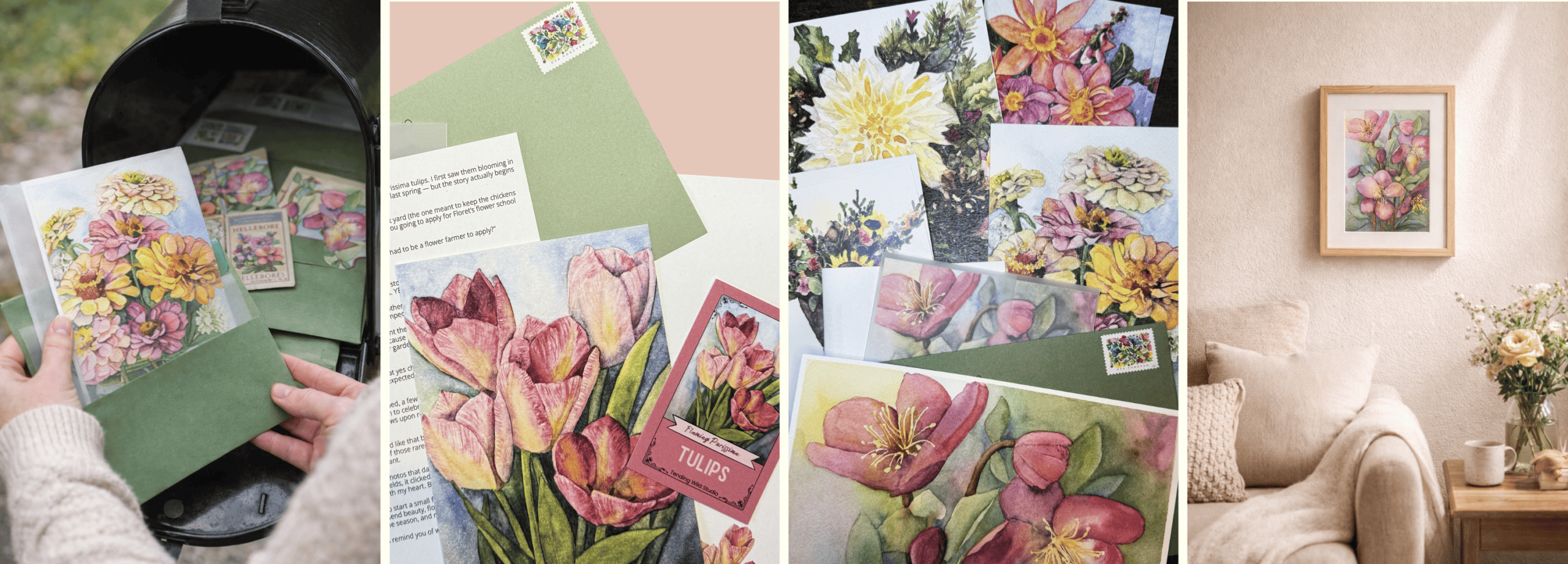 - A hand-painted floral print delivered to your mailbox (or to the mailbox of the person you’re gifting) each month.