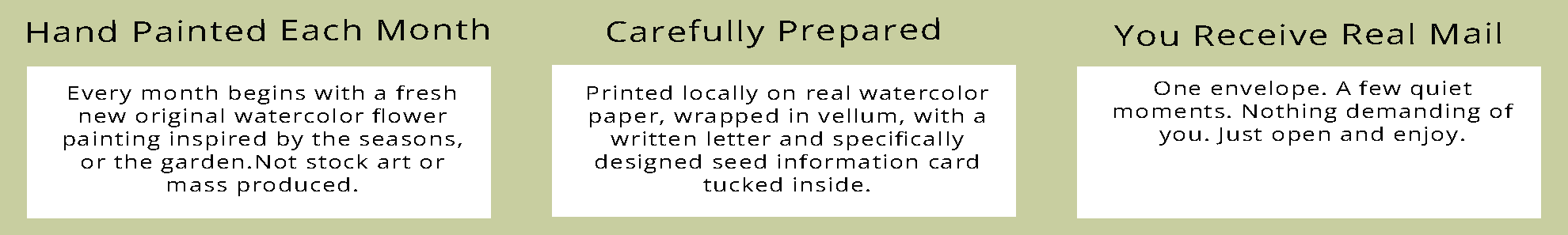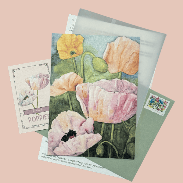 - A piece of real mail designed to bring a small pause and a bit of beauty into your day