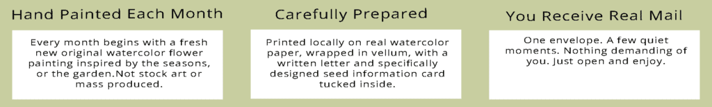 - A coordinating, designed ‘seed packet’ with information about the featured flower of the month